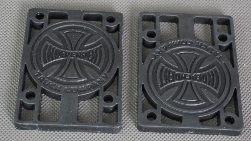 Podkładki oczywiście nowe w fabrycznym kartoniku . Zestaw zawiera komplet podkładek do 2 trucków . Wykonane z grubego i solidnego plastiku, idealne do deskorolki i longboarda.