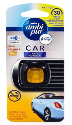 Samochodowy odświeżacz powietrza Ambi Pur Tobacco Citrus usuwa nieprzyjemne zapachy i odświeża wnętrze Twojego samochodu. Odśwież swój samochód zapachem cytrusów i pozwól swoim zmysłom powędrować do pełnego żywych kolorów cytrusowego gaju nad Morzem Śródziemnym. Samochodowe odświeżacze powietrza Ambi Pur zostały zaprojektowane specjalnie do samochodów. Ambi Pur usuwa nieprzyjemne zapachy, zamiast tylko je maskować i pozostawia w Twoim samochodzie lekką, świeżą woń.