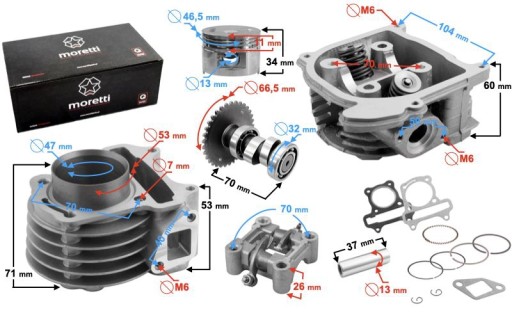 - cylinder i głowica 80cc Moretti do skutera GY6, bez zaworu recyrkulacji