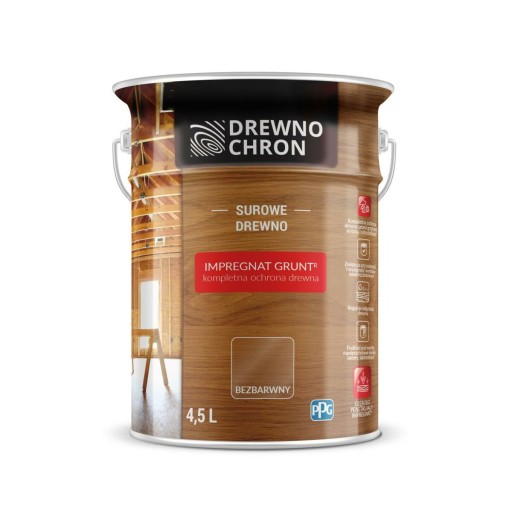- Celem uzyskania zabezpieczenia biologicznego drewna należy nanieść 2 warstwy Drewnochron Impregnat Grunt głęboko-penetrujący (bezbarwny).