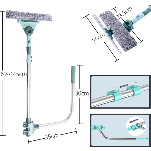 solidny długi uchwyt, pręt teleskopowy może rozszerzyć pręt od 69cm do 145cm, k może zaspokoić Twoje potrzeby, aby zapewnić różne wysokości. Działa dobrze zarówno dla zewnętrznych okien i wewnętrznych szklanych pryszniców.