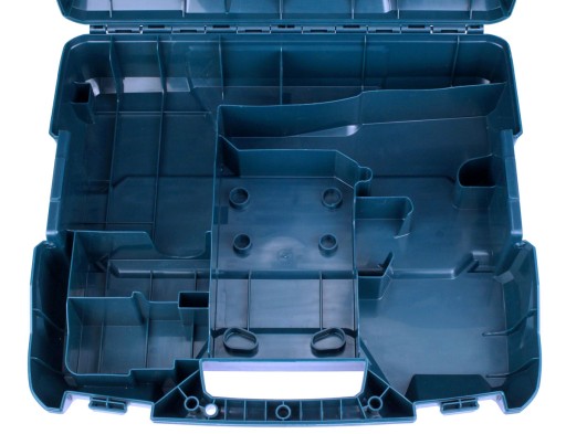 Wewnątrz walizka posiada odpowiednie wytłoczenia i uchwyty pozwalające na bezpieczny transport narzędzia, posiada również specjalnie wyprofilowane uchwyty do przechowywania osprzętu dodatkowego (wierteł, bitów wkrętarskich, uchwytów wiertarskich, akumulatorów, czy ładowarek).