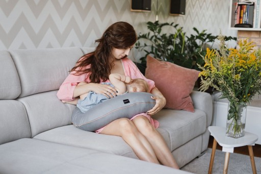 Środkowa część poduszki została lekko pogrubiona i powiększona, dzięki czemu dziecko jest zawsze ułożone na właściwej wysokości – tuż przy piersi mamy. Taka budowa umożliwi mamie przyjęcie wygodnej, wyprostowanej, odciążającej kręgosłup pozycji podczas karmienia piersią, równocześnie zapewniając dziecku stabilne i bezpieczne oparcie.