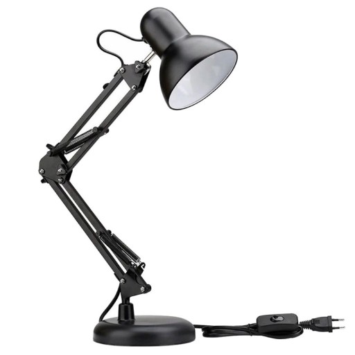 Oryginalna lampa na biurko, wykonana w całości z metalu. Posiada ramię gięte w 2 miejscach, oraz obrotową podstawę, dzięki czemu możliwe jest dopasowanie kąta padania światła do każdych warunków.