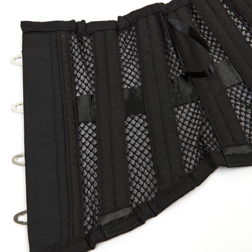 Wiązany gorset typu UNDERBUST wykonany z gęstej, wytrzymałej siatki. Konstrukcję stanowią 24 mocne metalowe fiszbiny spiralne.