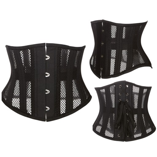 Wiązany gorset typu UNDERBUST wykonany z gęstej, wytrzymałej siatki. Konstrukcję stanowią 24 mocne metalowe fiszbiny spiralne.