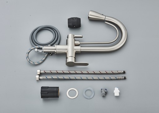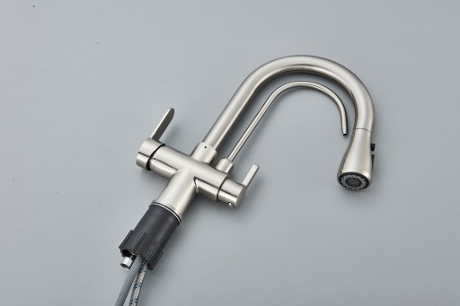 ТРЕХХОДОВОЙ КУХОННЫЙ КРАН, ФИЛЬТР, ВЫДВИЖНОЙ НОСИК, СЕРЕБРЯНЫЙ НИКЕЛЬ