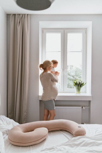 Lewostronna pozycja ciała w czasie ciąży zapewnia dziecku lepszy dopływ krwi z organizmu matki. W czasie snu nie jesteśmy jednak w stanie kontrolować pozycji ciała, dlatego dodatkowe wsparcie pod plecy jakie zapewnia poduszka „9” umożliwi nam całonocny wypoczynek w pozycji lewostronnej a jednocześnie da swobodę ruchów i niezwykły komfort wypoczynku. Poduszka umożliwia także zmianę pozycji ciała na prawy bok oraz na pozycję pośrednią bok-plecy.