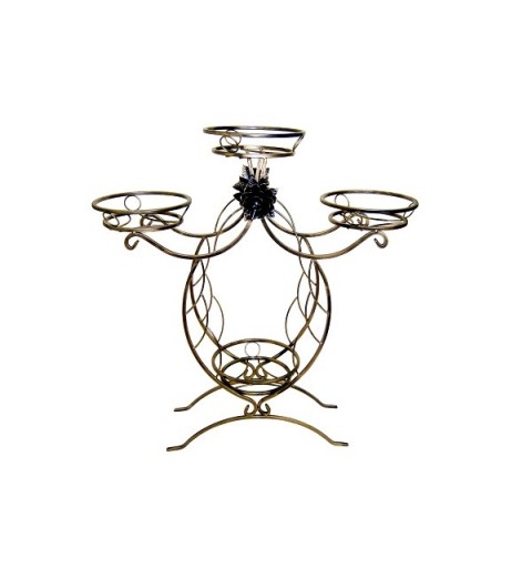 Kwietnik na cztery doniczki. Trwałe wykonanie z metalu. Stoi stabilnie. Może stanowić element dekoracyjno użytkowy wnętrza mieszkania, biura jak również zdobić ogród, taras lub balkon. Precyzyjnie wykonane kute elementy kwietnika dopasują się praktycznie do każdego stylu.