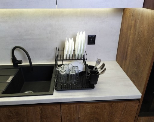 - ✔️Odłączany, dwukomorowy plastikowy ociekacz na sztućce