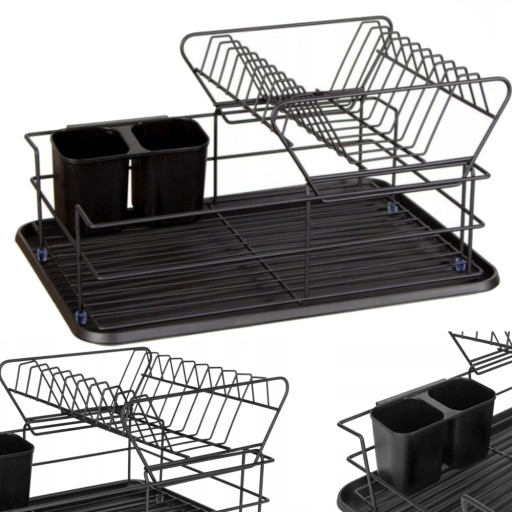 ✅Dwupoziomowa suszarka do naczyń charakteryzuje się bardzo wysoką jakość i trwałą i metalową konstrukcją. Wykonana z żywicy tacka chroni blat przed zamoczeniem. W zestawie znajduje się również plastikowy, dwukomorowy ociekacz na sztućce. Metalowa czarna suszarka jest eleganckim rozwiązaniem do każdej kuchni.