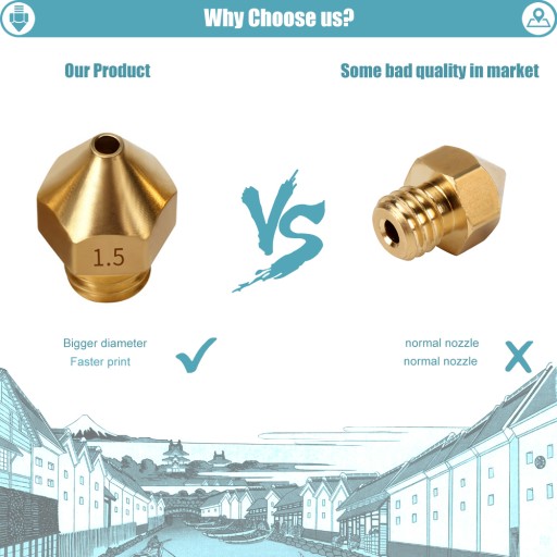 Początkowo stosowana zamiennie w głowicach MK8, jako modernizacja poprawiająca stabilność termiczną, oraz z racji większej główki magazynująca większą ilość gorącego filamentu poprawiała jakość druku modeli wykonywanych z większymi prędkościami - filament pomimo szybkiej ekstruzji nie wychładzał się gdyż był magazynowany w dyszy o większej od standardowej pojemności.