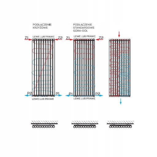 - standardowym podłączeniem jest podłączenie boczne. Istnieje możliwość wykonania podłączenia świecznikowego góra/dół