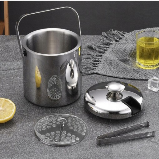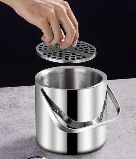 - PODWÓJNA ŚCIANKA TRZYMA CHŁÓD - zestaw wykonany jest z trwałej stali nierdzewnej. Pokrywka i wiaderko mają podwójne ścianki, które dłużej utrzymują lód w stanie zamrożonym.