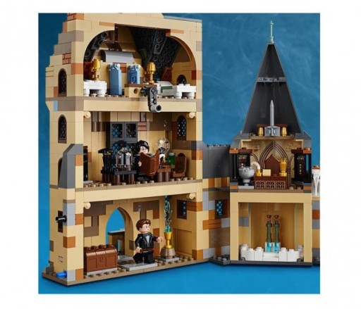 - Zestaw LEGO® z serii Harry Potter™ składa się z dwupiętrowej wieży zegarowej na Hogwarcie™, holu wejściowego, sali do lekcji obrony przed czarną magią, skrzydła szpitalnego, łazienki prefektów, gabinetu Dumbledore'a oraz lodowych dekoracji na Bal Bożonarodzeniowy.