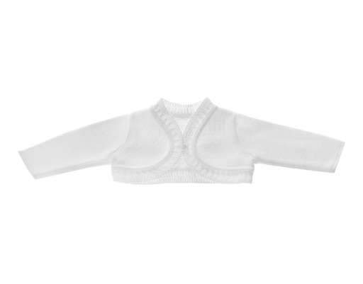 Piękne, eleganckie bolerko z falbanką dzianinową, idealne na Chrzest i inne okazje.