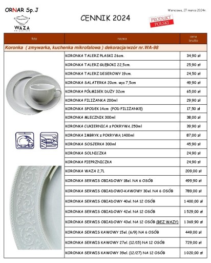 SERWIS OBIADOWY "KORONKA"