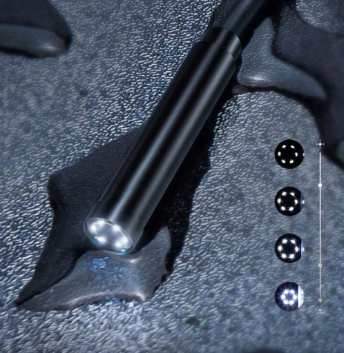 Kamera posiada wbudowane 8diod LED, które doświetlają miejsce pracy endoskopu. Diody posiadają regulację jasności dzięki czemu możemy uniknąć prześwietlenia obrazu i dostosować moc diod LED do sytuacji.