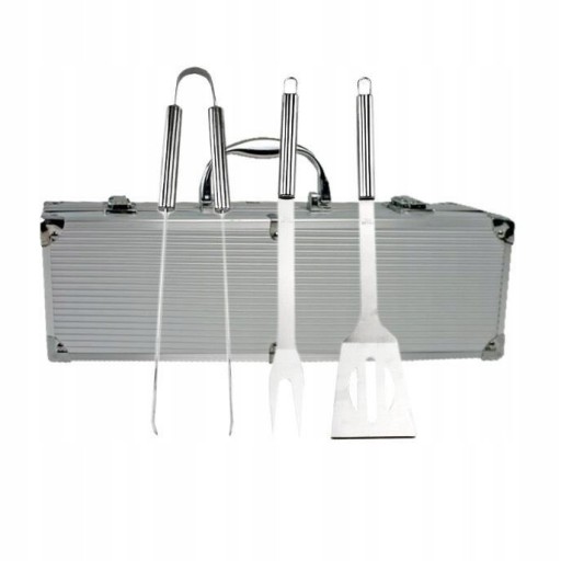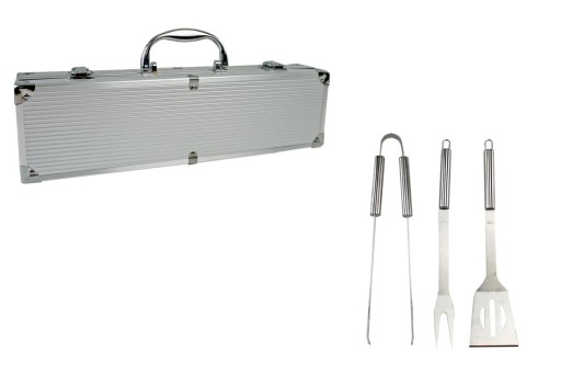 - Elegancki zestaw narzędzi do grillowania zapakowany w aluminiową walizkę.