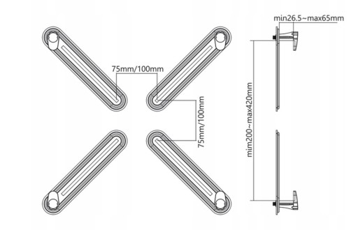 - Do monitorów o głębokości ramy od 26,5 do 65 mm
