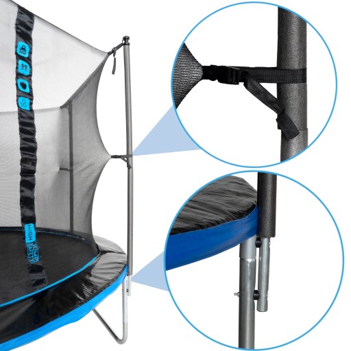 ✳️ Dzięki wytrzymałym materiałom, piankowym okładzinom słupków oraz maty ochronnej, trampolina jest odporna na działanie czynników atmosferycznych oraz promieniowanie UV. Nie musisz się martwić o przyspieszone zużycie urządzenia czy jego niszczenie pod wpływem niekorzystnych warunków pogodowych.