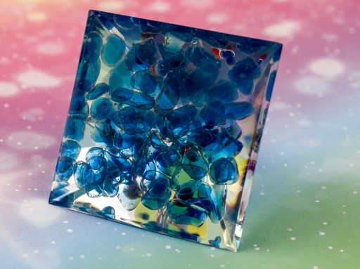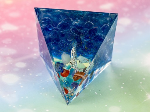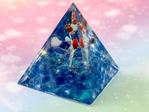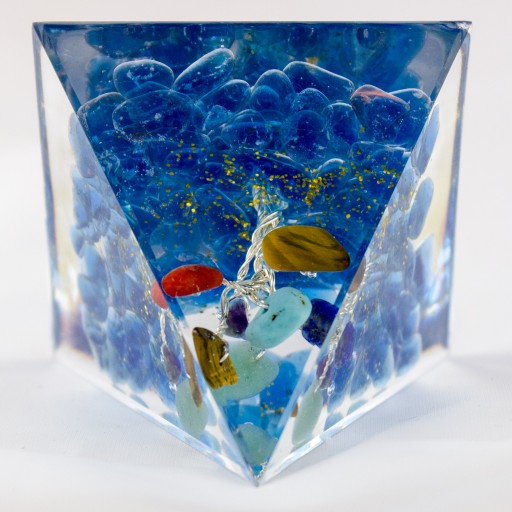 Piękna Piramidka Orgonitowa – Głęboko-niebieski żwir szklany, piękna dekoracja z naturalnej żywicy z Drzewkiem wewnątrz z kolorowymi minerałami, emanująca energią dającą dobre zdrowie, neutralizującą złą energię, oczyszczającą otoczenie, dodająca wigoru.