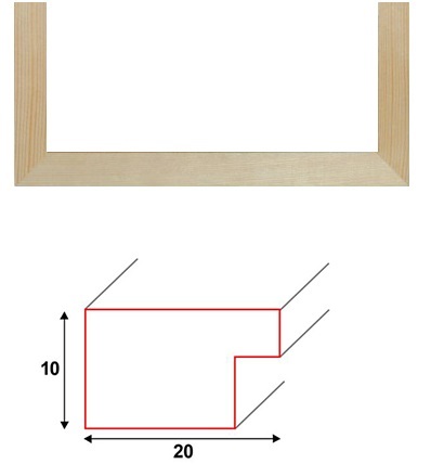 - Profil ramki oglądany z przodu ma 20 mm szerokości, a z boku 10 mm.