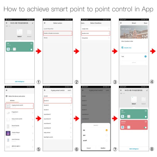 - Może być używany w wielu scenach z inteligentnymi urządzeniami z obsługą sterowania punkt-punkt: przyspiesz czas reakcji inteligentnych urządzeń, zapewnij płynniejszą kontrolę, usuń zależność tylko od sieci Wi-Fi; Może być używany nie tylko jako normalny przełącznik scen, ale także jako pilot zdalnego sterowania punkt-punkt dla inteligentnych urządzeń w aplikacji w celu łatwiejszej kontroli.