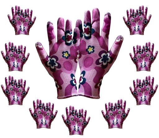 10x RĘKAWICZKI OGRODOWE RĘKAWICE DAMSKIE W KWIATKI KOLOROWE DO OGRODU 8-M