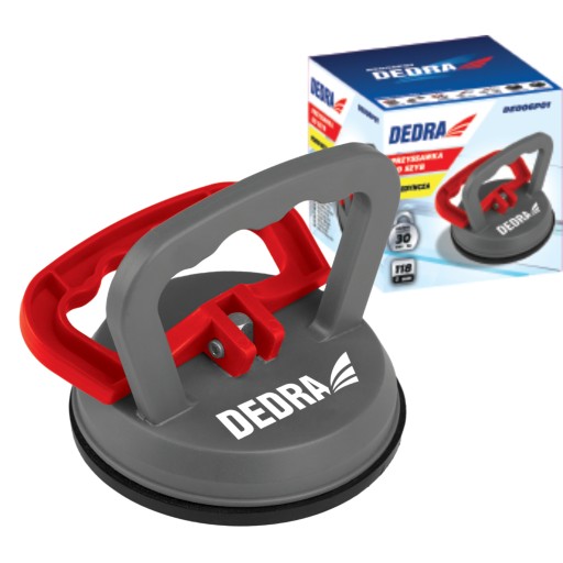 Maksymalny udźwig przyssawki do szyb DED06P01 wynosi 30kg, dlatego najlepiej sprawdzi się podczas transportu płyt, tafli średniego rozmiaru.
