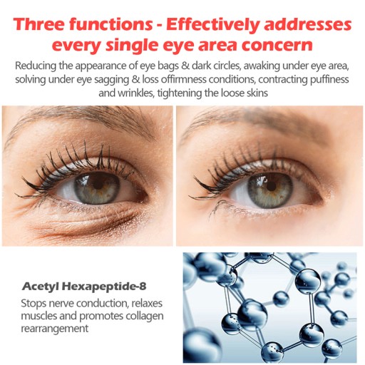 Trzy funkcje-skutecznie rozwiązuje każdy obszar z wzorem pojedynczego oka, zmniejszając wygląd worki pod oczami i ciemne koła, budząc się pod obszarem oczu, rozwiązując zwiotczenie oczu i utratę warunków offirmness, kurczenie się obrzęków i zmarszczek, napinając luźne skórki.