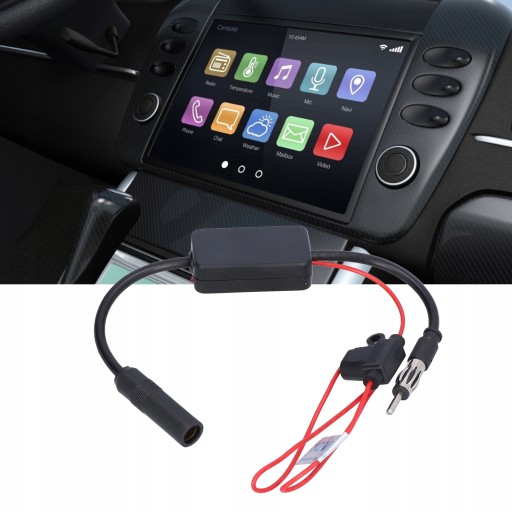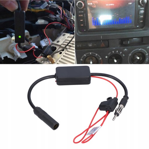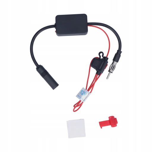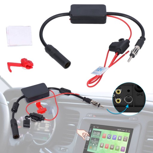 ▶️czerwony przewód do dodatniego bieguna zasilacza 12 V, podłącz wzmacniacz między radiem a anteną i podłącz bezpośrednio.