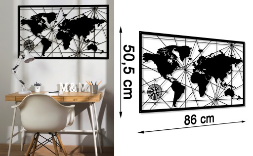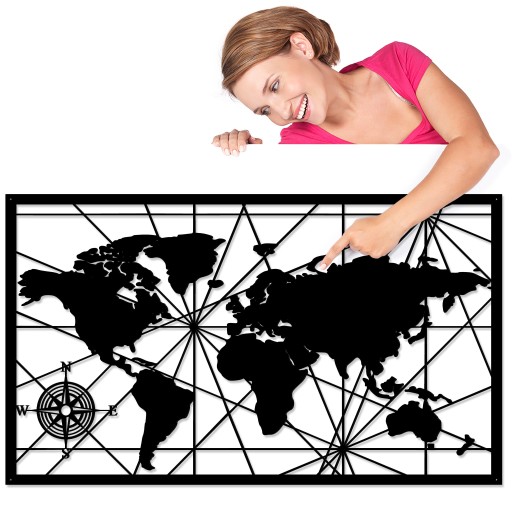 OBRAZ MAPA ŚWIATA AŻUROWY DEKORACJA ŚCIENNA DUŻY