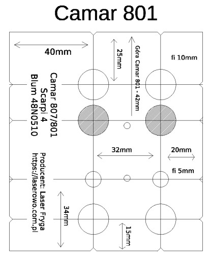 - Camar 801 - od boku 20 lub 40mm od góry 42mm,