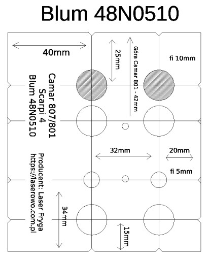 - Blum 48N0510 - od boku 20 lub 40mm, od góry 25mm.