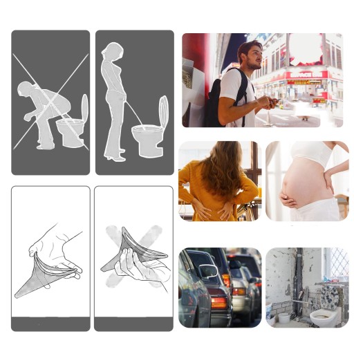 - Nie musisz się martwić o wyciek moczu podczas korzystania z żeńskiego pisuaru.Co ważniejsze, nowa generacja żeńskich pisuarów jest miękka, składana, wodoodporna, kompaktowa i lekka.