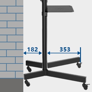 - Niska konstrukcja z tylnymi nóżkami Płaska konstrukcja tylnych nóżek (tylko 182 mm do ściany) umożliwia umieszczenie wózka telewizyjnego blisko ściany, oszczędzając miejsce i zwiększając stabilność.