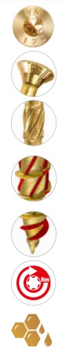 - Umożliwia wkręcanie bez nawiercania w twardych gatunkach drewna.