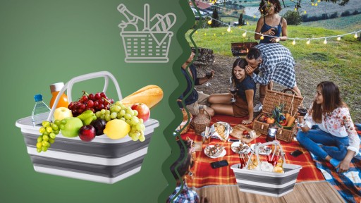➡️Kosz koszyk silikonowy składany z uchwytami pojemny duży 16L kemping zakupy