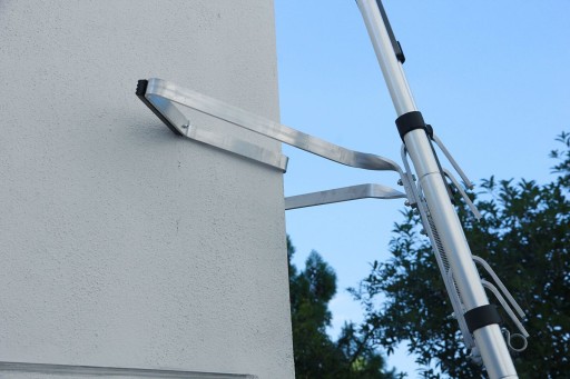 Nasze wsporniki drabinowe w kształcie litery V można stosować płasko na ścianie, mając pewność, że gumowe odbojniki zapewnią bezpieczeństwo i nie pozostawią śladów na fasadzie budynku.