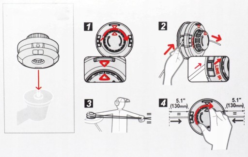 - Przekręcić przycisk zgodnie z wskazówkami zegara - żyłka nawija się do środka szpuli.