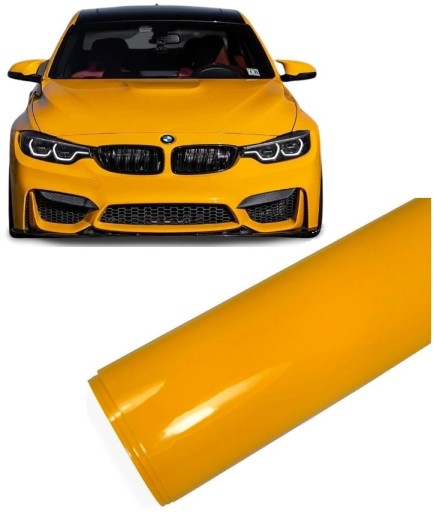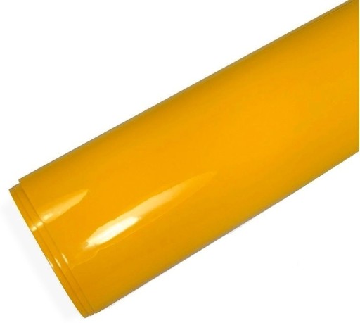 Samochodowa folia żółta połysk. Folia posiada klej mikrokanalikowy, który ułatwia wyprowadzanie pęcherzyków powietrza podczas aplikacji, dzięki czemu aplikacja jest łatwiejsza i szybsza w porównaniu do folii ze zwykłym klejem.