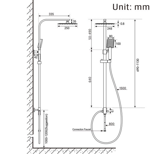 - Po zamontowaniu można regulować wysokość rury prysznicowej.