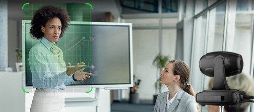 Najmniejsza, ale w pełni funkcjonalna kamera PTZ 1080p (FullHD) z szerokim kątem widzenia (90 stopni), funkcją automatycznego kadrowania uczestników lub śledzenia uczestnika. Zoom optyczny (3x) + zoom cyfrowy (16x). Sterowanie z poziomu pilota lub poprze RS232.