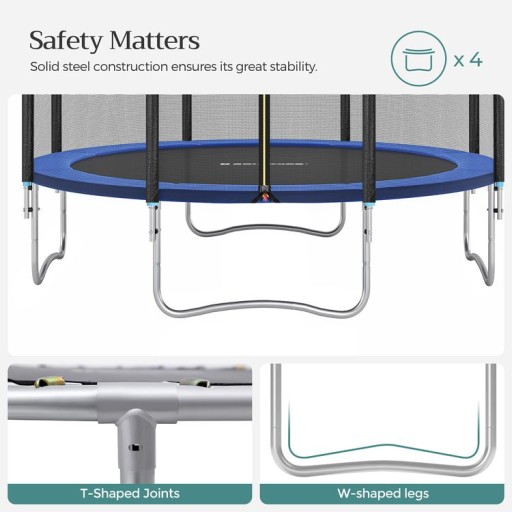 - Lepiej być bezpiecznym niż żałować: bezpieczeństwo jest oczywiście najwyższym priorytetem, zwłaszcza gdy dzieci korzystają z trampoliny. i może być obciążony do 150 kg. Więc możesz się zrelaksować, podczas gdy Twoje dzieci radośnie skaczą