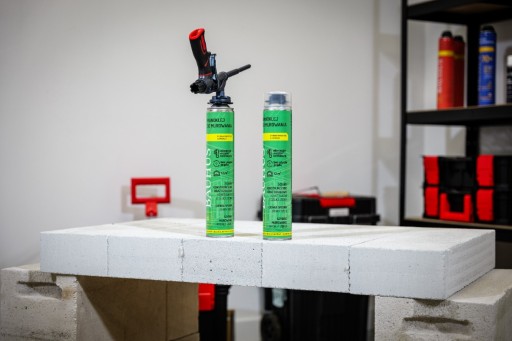 ⭐ jest łatwy w aplikacji i nie wymaga użycia prądu, wody oraz specjalistycznego sprzętu - zaprawę aplikujemy standardowym pistoletem do pian