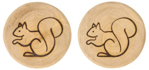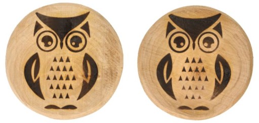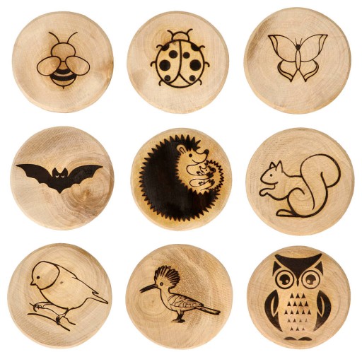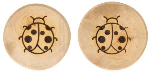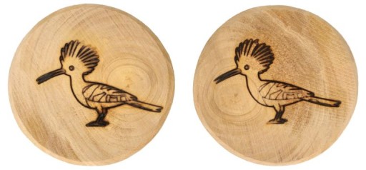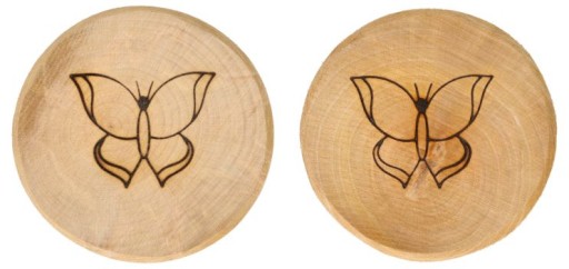 - inne: drewniane plastry z brzozy i olchy, starannie oszlifowane o prostej, klasycznej i trwałej formie z wypalonymi sylwetkami: