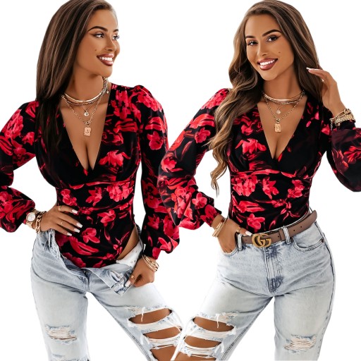 СТИЛЬНОЕ БОДИ С V-ОБРАЗНЫМ ВЫРЕЗОМ, ДЛИННЫМ РУКАВОМ, ЦВЕТА S/M