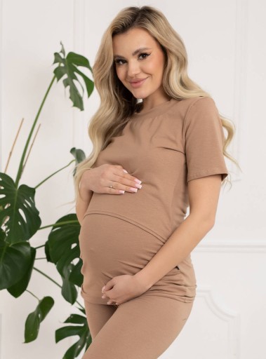 Bluzka Emma to ideał w swej prostocie! Mamy, które cenią wygodę i komfort pokochają ją, ponieważ świetnie sprawdzi się jako baza do codziennych i wieczorowych stylizacji. Doskonała na czas ciąży jak i po rozwiązaniu. Emma posiada krótki rękawek, klasyczny okrągły dekolt. Pod biustem posiada opcję karmienia w formie zakładki odchylanej do góry. Takie rozwiązanie jest ułatwieniem dla mam, ponieważ umożliwia dyskretne i komfortowe nakarmienie maluszka bez konieczności odkrywania całego ciała. Bluzeczka jest nieco dłuższa dzięki czemu możesz mieć pewność, że przykryje cały brzuszek. Miły i przyjemny w dotyku materiał idealnie dopasuje się do Twojej sylwetki a marszczenia po bokach wyeksponuje ciążowy brzuszek. Nasze bluzki ciążowe wykonane są w 100% z bawełny, dlatego nie musisz się obawiać o swój komfort czy ewentualną reakcję alergiczną maluszka.