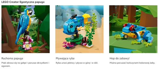 Dzięki zestawowi LEGO z trzema egzotycznymi zwierzętami dzieci w wieku od 7 lat rozwiną umiejętność budowania i opowiadania.
